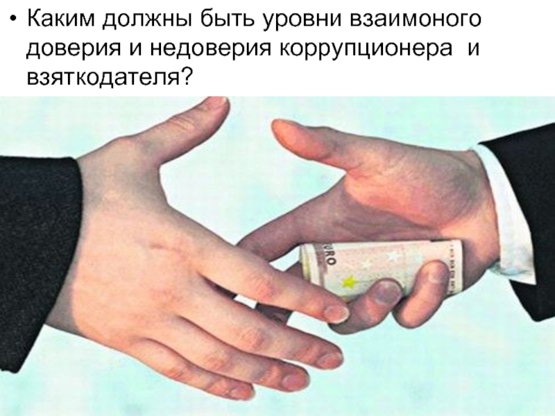 Слайд 42Каким должны быть уровни взаимоного доверия и недоверия коррупционера и взяткодателя?