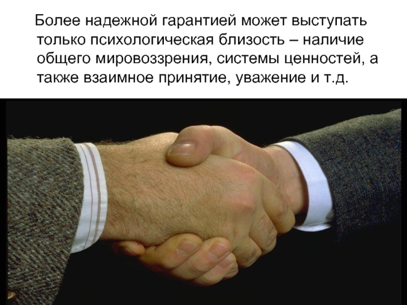 Слайд 35 Более надежной гарантией может выступать только психологическая близость –