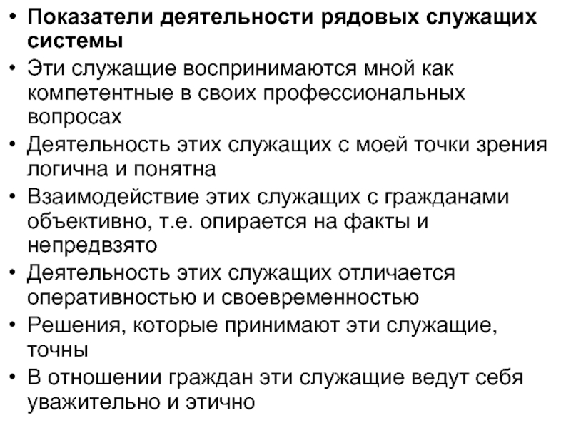 Слайд 38Показатели деятельности рядовых служащих системы