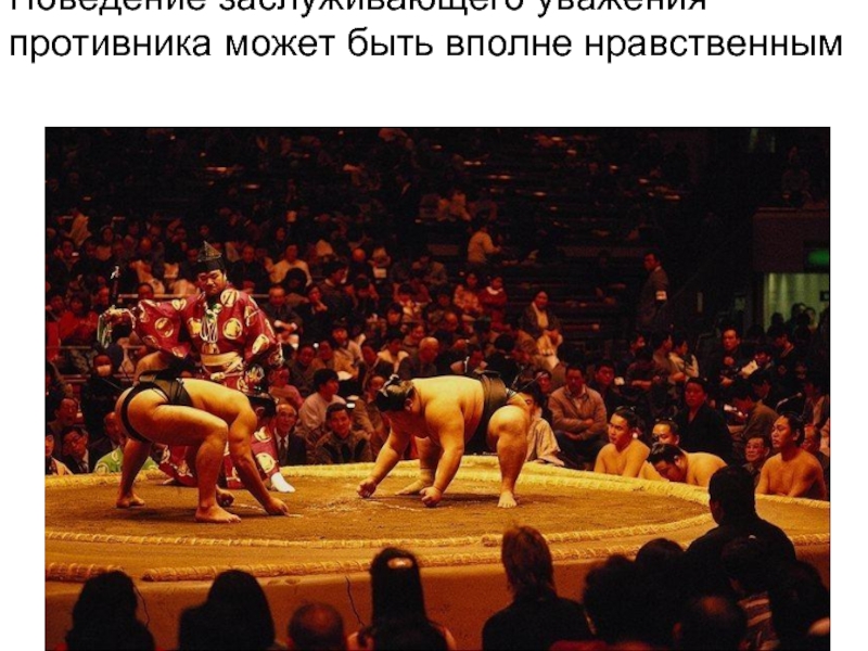 Слайд 11Поведение заслуживающего уважения противника может быть вполне нравственным