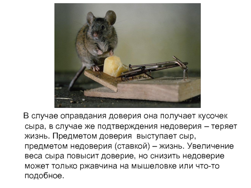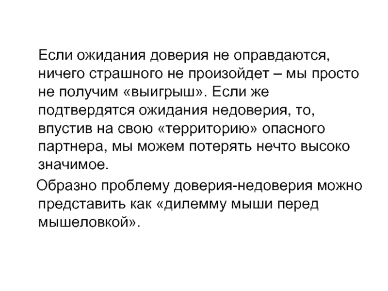 объективным оценкам эквивалентом того, что мы рассчитываем приобрести в результате взаимодействия (предмет доверия не эквивалентен предмету недоверия).