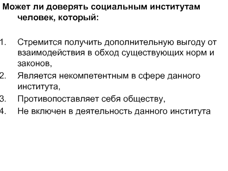 Слайд 12Может ли доверять социальным институтам человек, который: