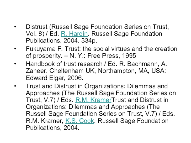 Слайд 53Distrust (Russell Sage Foundation Series on Trust, Vol. 8) / Ed.