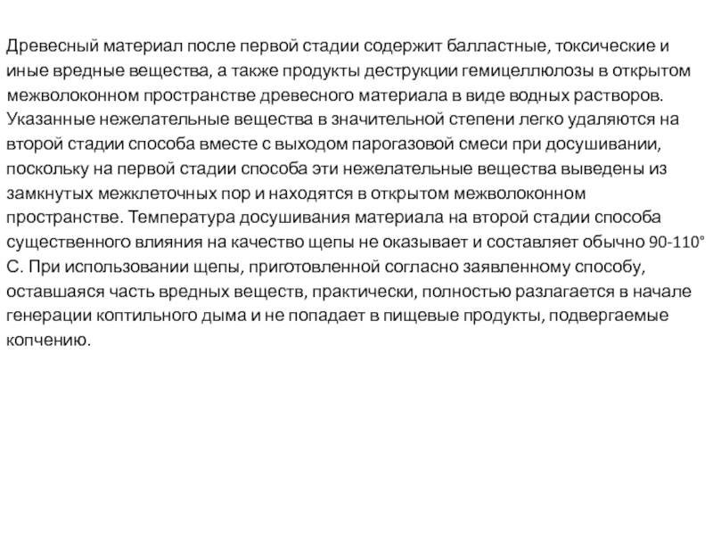 Слайд 7Древесный материал после первой стадии содержит балластные, токсические и иные вредные