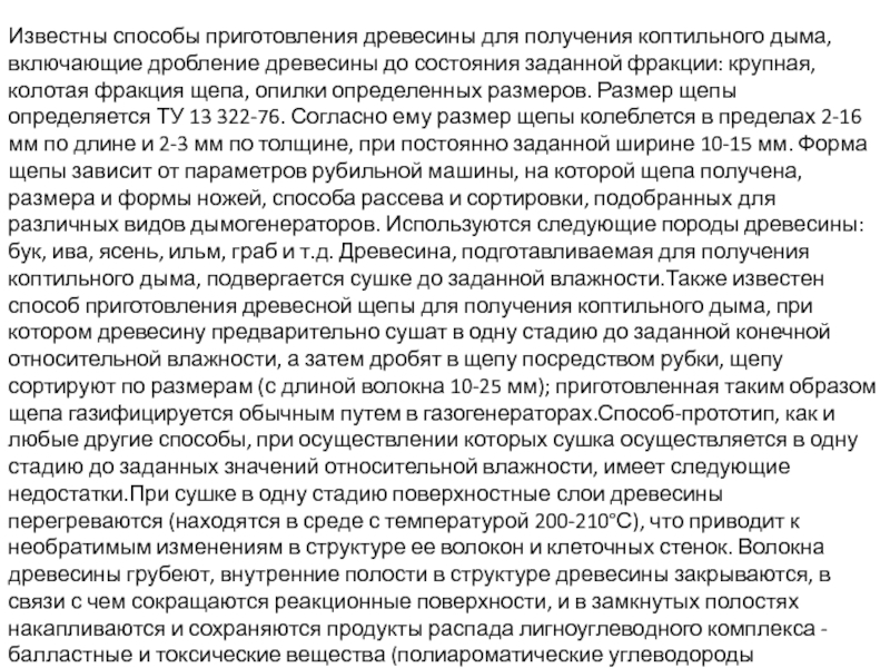 Слайд 3Известны способы приготовления древесины для получения коптильного дыма, включающие дробление древесины