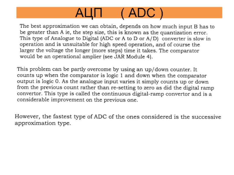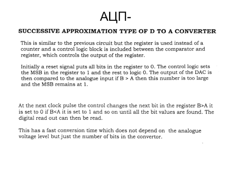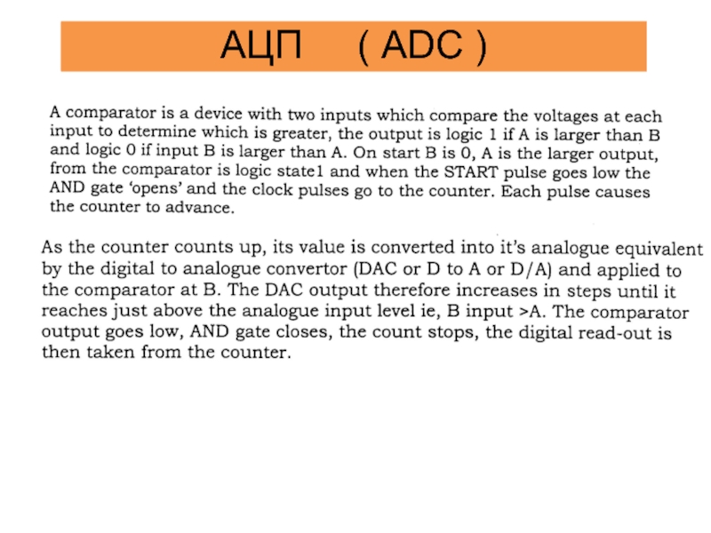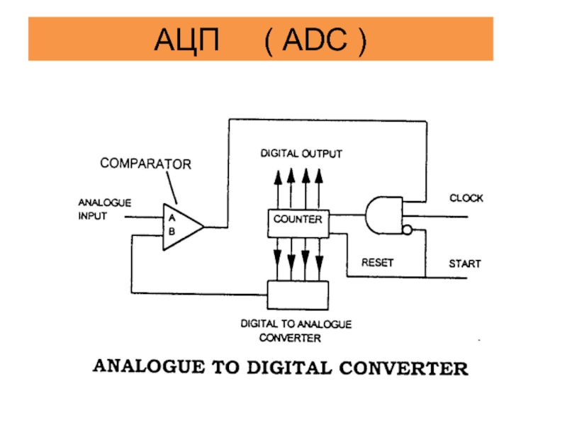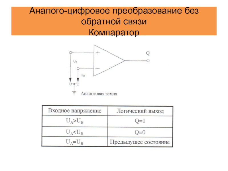 Слайд 19Аналого-цифровое преобразование без обратной связи Компаратор