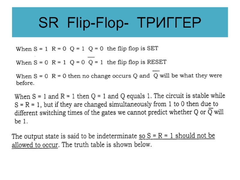 Слайд 4SR Flip-Flop- ТРИГГЕР