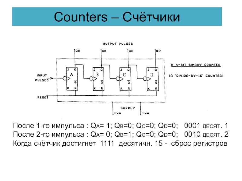 Когда счётчик достигнет 1111 десятичн. 15 - сброс регистров