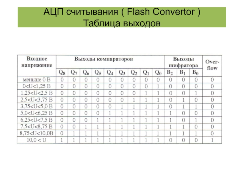 Слайд 20АЦП считывания ( Flash Convertor ) Таблица выходов