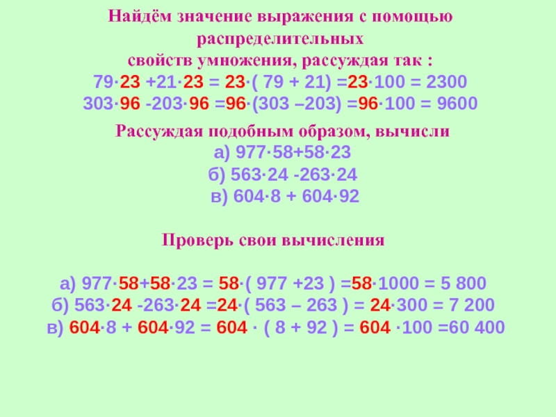 а) 977·58+58·23 = 58·( 977 +23 ) =58·1000 = 5 800
