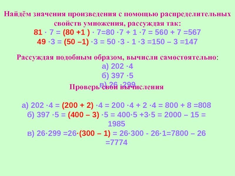 в) 26·299 =26·(300 – 1) = 26·300 - 26·1=7800 – 26 =7774