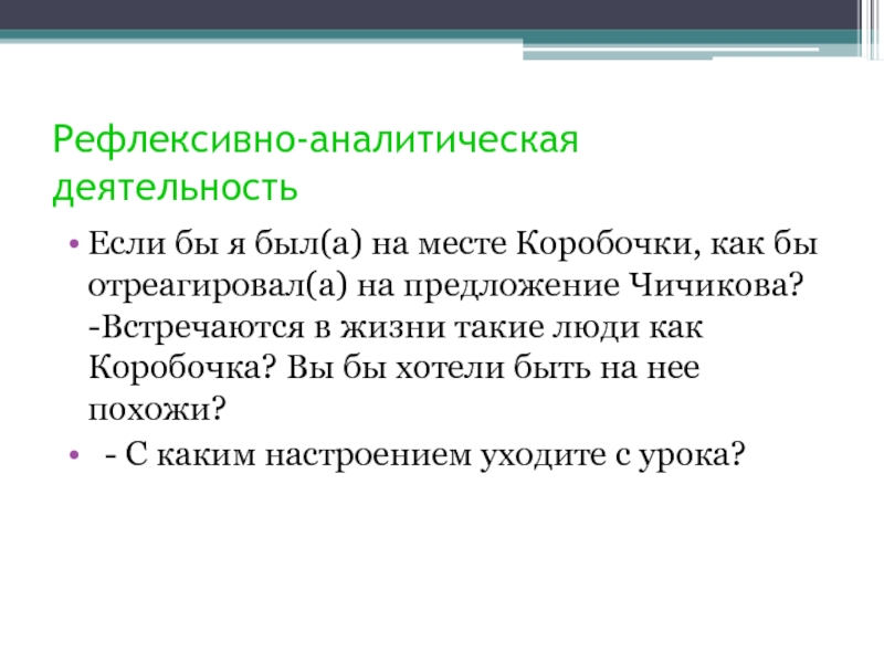 В образе К. заключен тип «дубинноголового» упрямца, закостенелого и омертвевшего в своей ограниченности: «иной и почтенный, и государственный даже человек, а на деле выходит совершенная Коробочка. Как зарубил что себе в голову, то уж ничем его не пересилишь…».