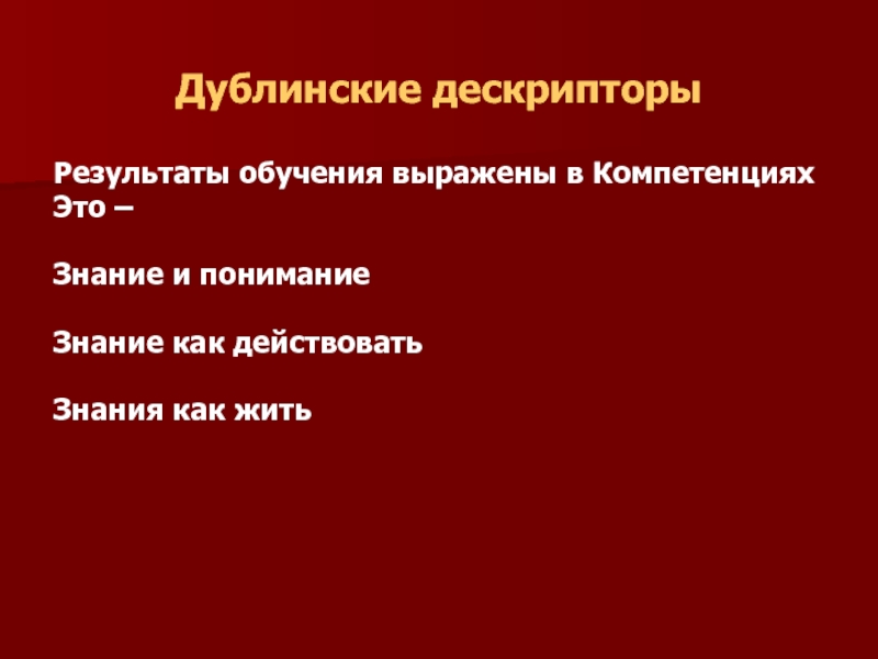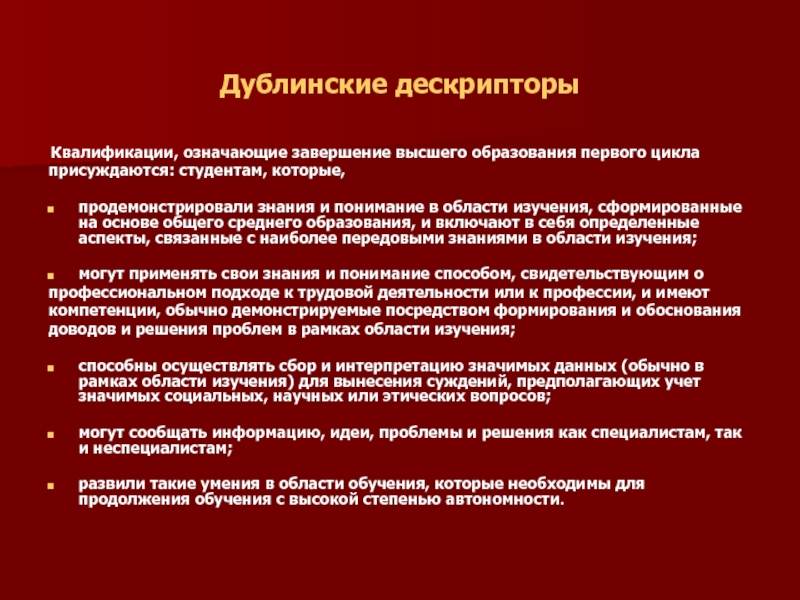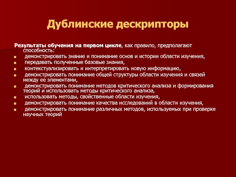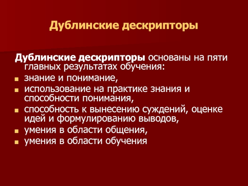 Дублинские дескрипторы основаны на пяти главных результатах