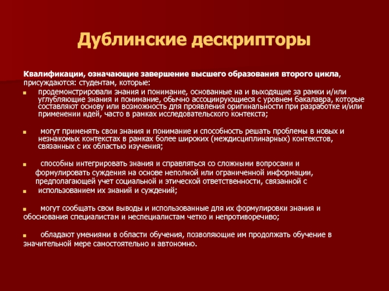Слайд 3Дублинские дескрипторы