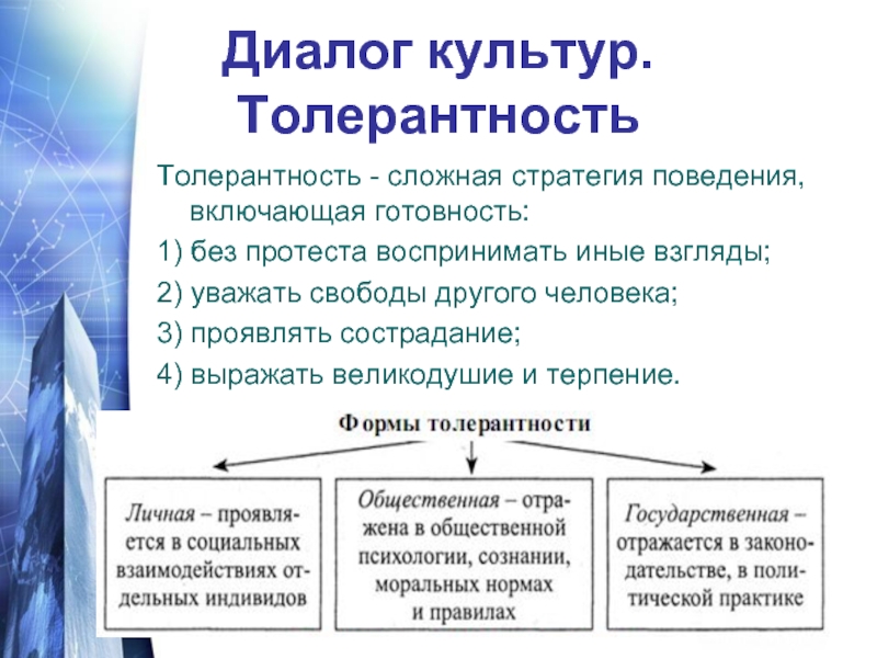 Толерантность - сложная стратегия поведения, включающая готовность: