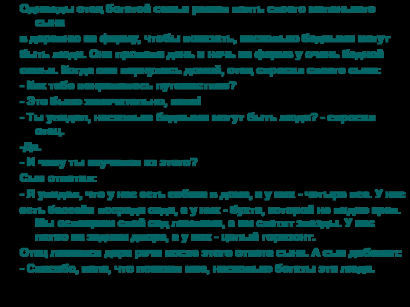 Слайд 3Однажды отец богатой семьи решил взять своего маленького сына