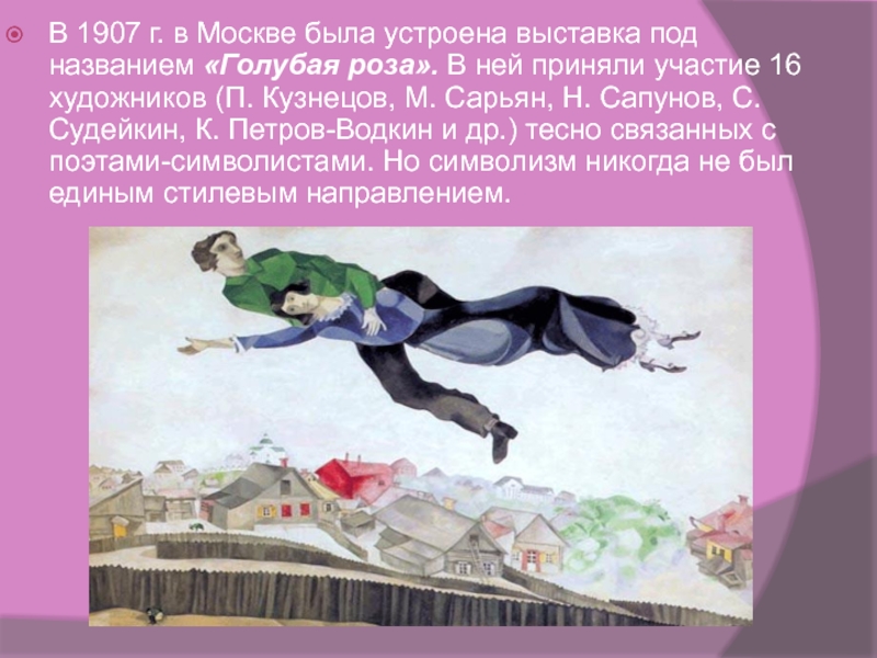 Слайд 23В 1907 г. в Москве была устроена выставка под названием «Голубая роза». В