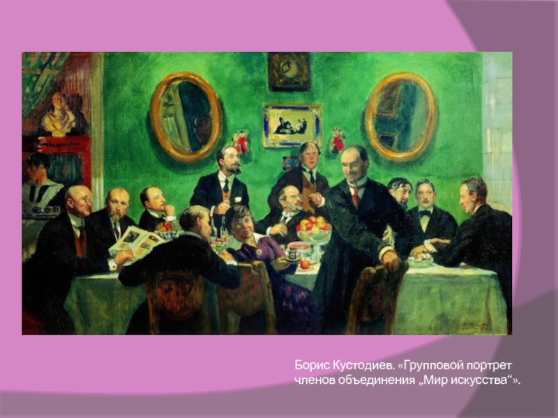 Слайд 22Борис Кустодиев. «Групповой портрет членов объединения „Мир искусства“».