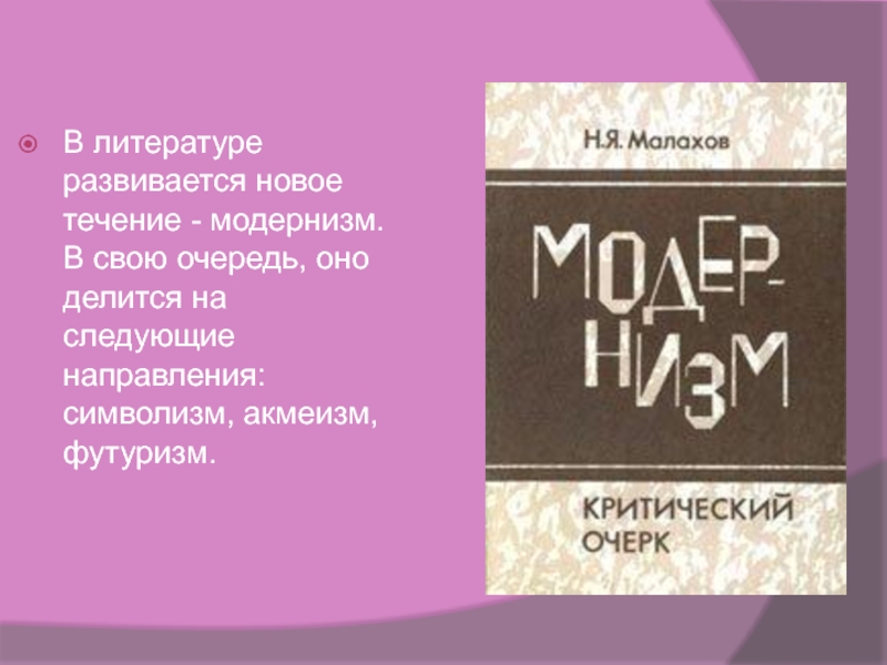 Слайд 14В литературе развивается новое течение - модернизм. В свою очередь, оно