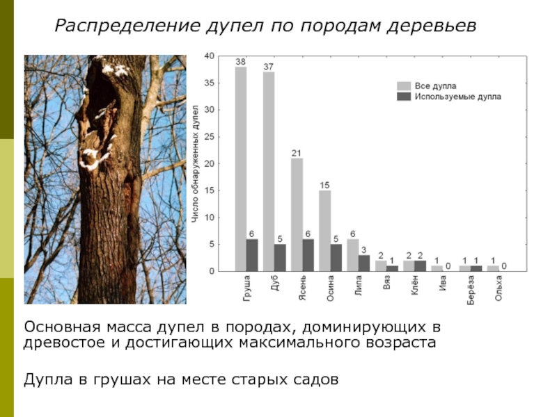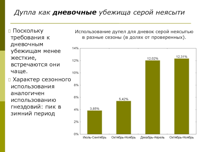 Использование дупел для дневок серой неясытью в разные сезоны (в долях от проверенных).