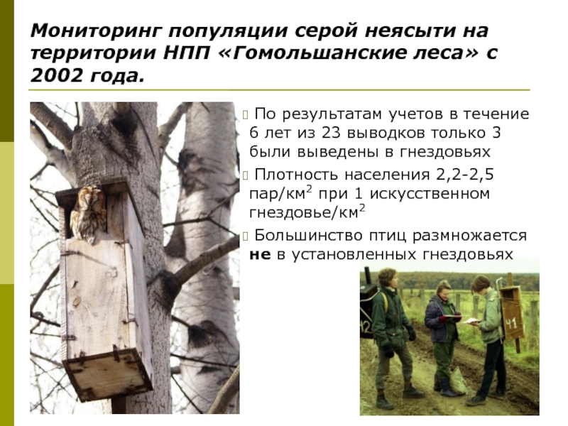 Плотность населения 2,2-2,5 пар/км2 при 1 искусственном гнездовье/км2