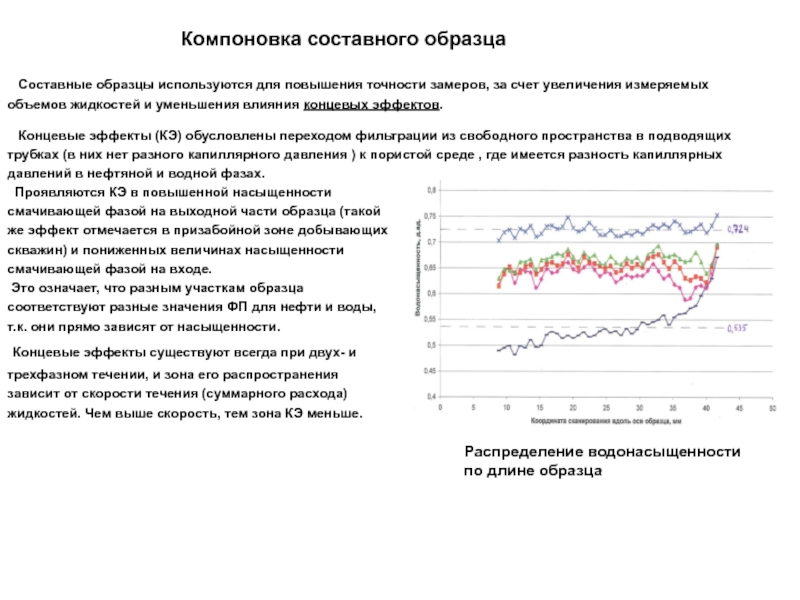 Концевые эффекты (КЭ) обусловлены переходом фильтрации из свободного пространства в подводящих трубках (в них нет разного капиллярного давления ) к пористой среде , где имеется разность капиллярных давлений в нефтяной и водной фазах.