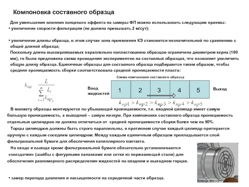Наиболее правильно измерение перепада давления проводить на серединной части составного образца, для исключения влияния концевого эффекта.