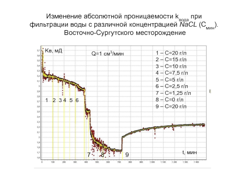 Вытесняя воду из образца моделью нефти, достичь значений кво , соответствующих пластовым, невозможно.