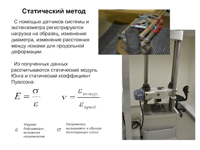 Значения модуля Юнга, определенные динамическим методом в 3-8 раз больше, чем значения того же модуля, определяемого статическим методом.