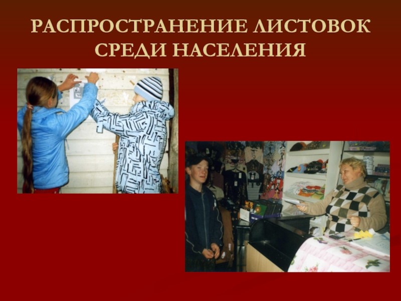 Слайд 8РАСПРОСТРАНЕНИЕ ЛИСТОВОК СРЕДИ НАСЕЛЕНИЯ