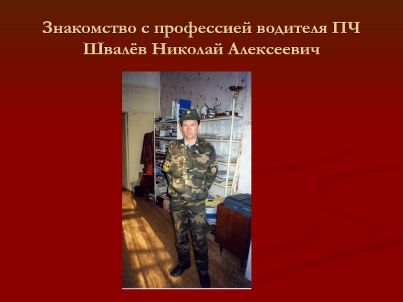Слайд 18Знакомство с профессией водителя ПЧ Швалёв Николай Алексеевич