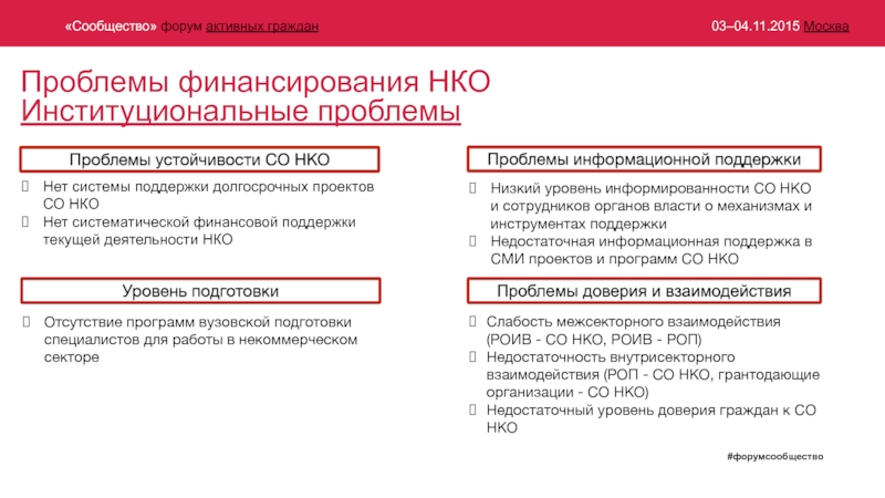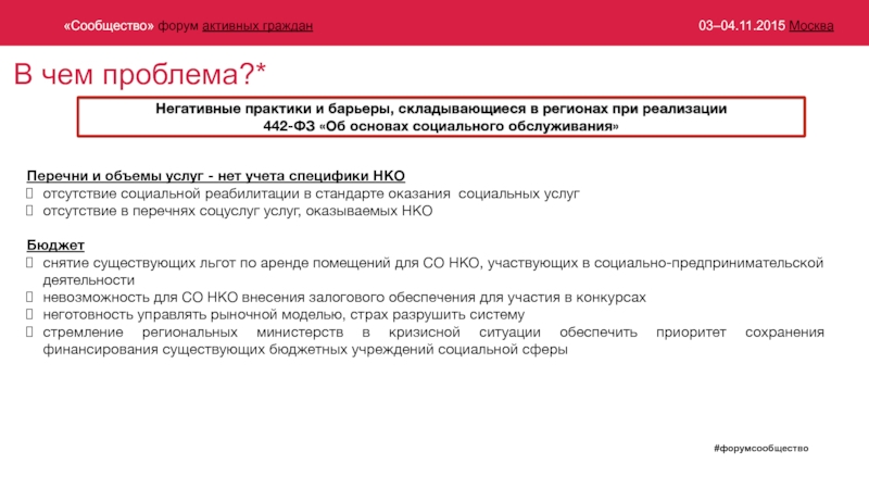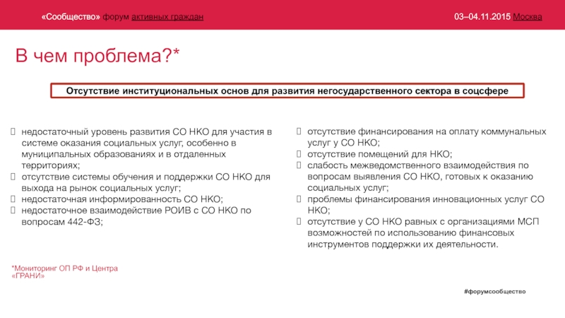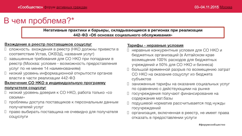 слабость межведомственного взаимодействия по вопросам выявления СО НКО, готовых к оказанию социальных услуг;