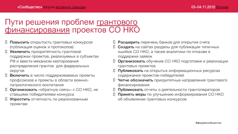 Увеличить приоритетность грантовой поддержки проектов, реализуемых в субъектах РФ и ввести механизм квотирования распределения грантов для федеральных округов