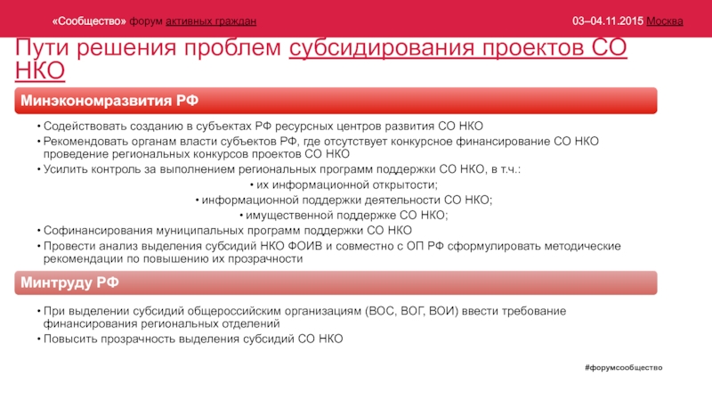 Недостаточная прозрачность выделения субсидий ФОИВ для СО НКО