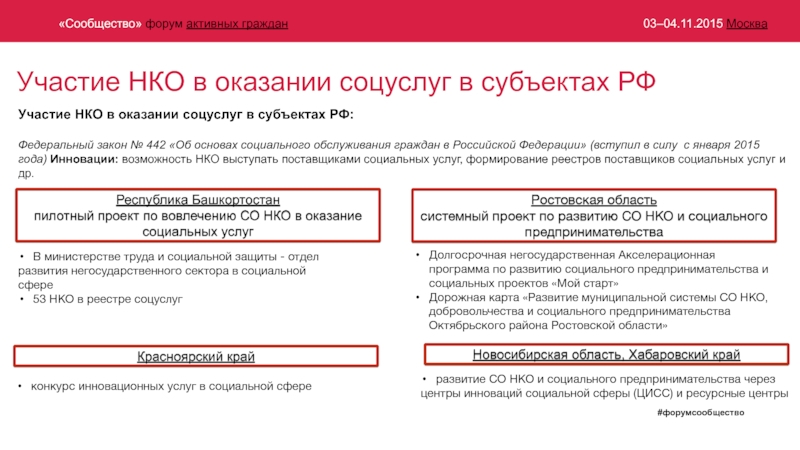 В субъектах есть эффективные организации, которые могут быть поставщиками соцуслуг