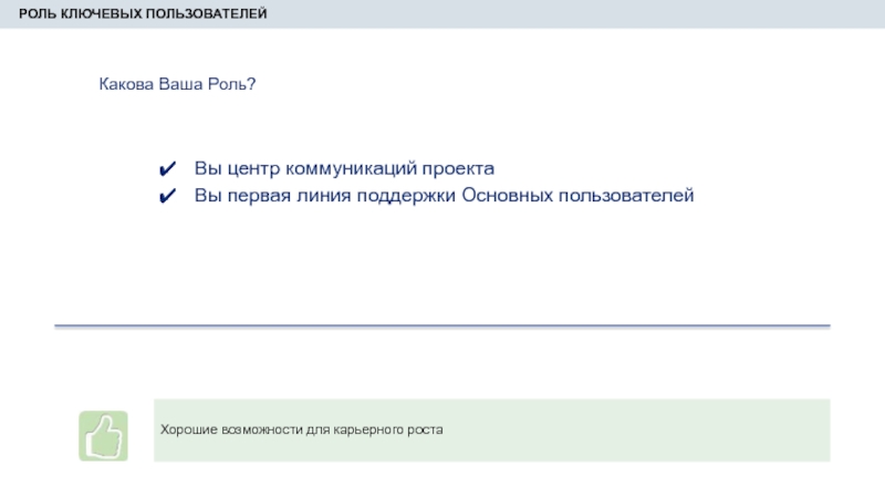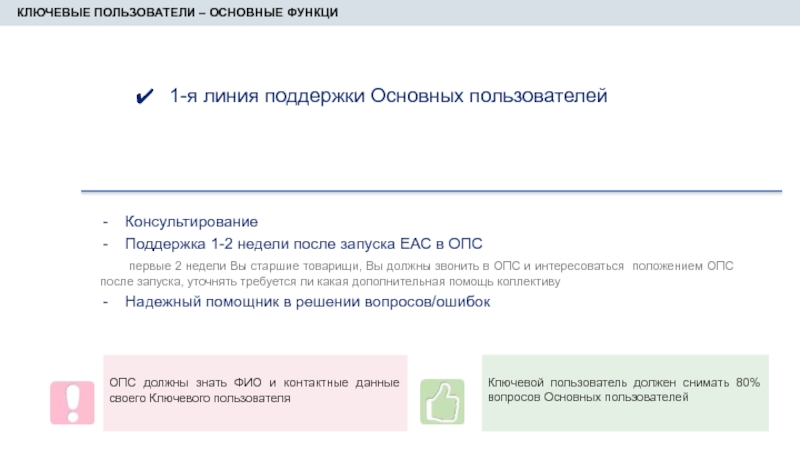 Ключевой пользователь должен снимать 80% вопросов Основных пользователей