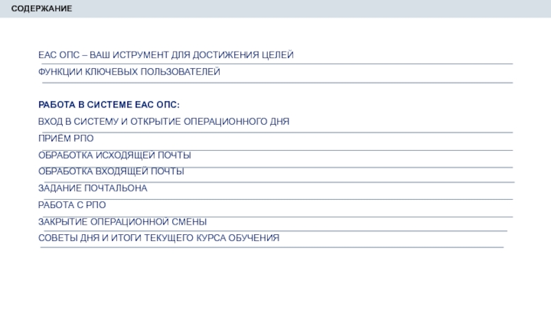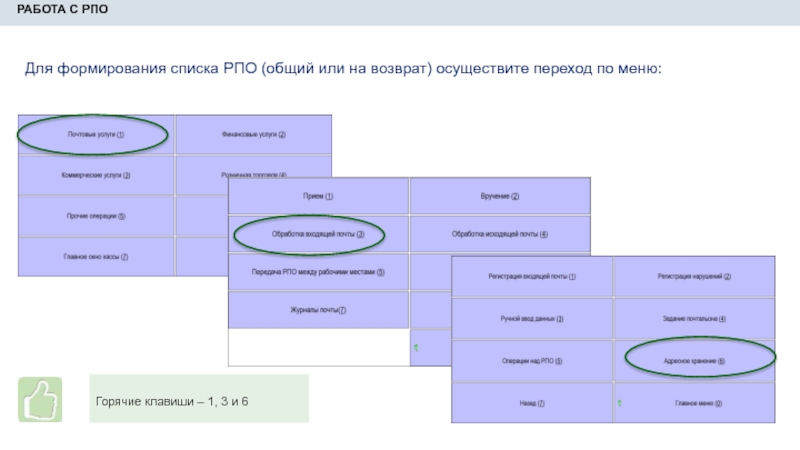 Комплект обучающего материала должен быть на рабочем столе каждого операционного окна ОПС