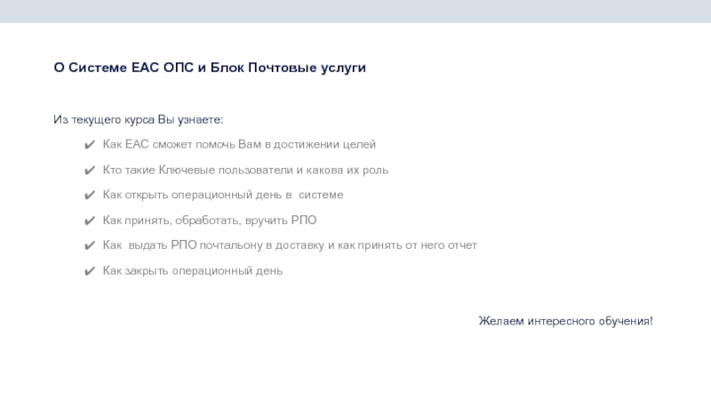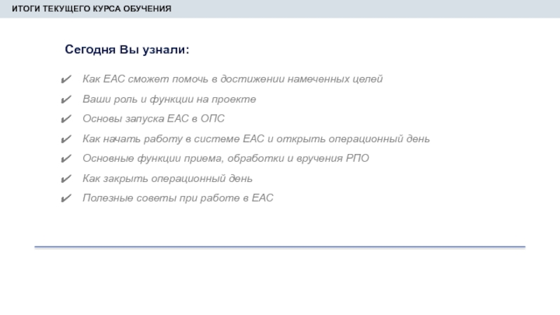 Поддержка 1-2 недели после запуска ЕАС в ОПС