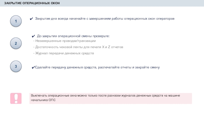 Выключать операционные окна можно только после разноски журналов денежных средств на машине начальника ОПС
