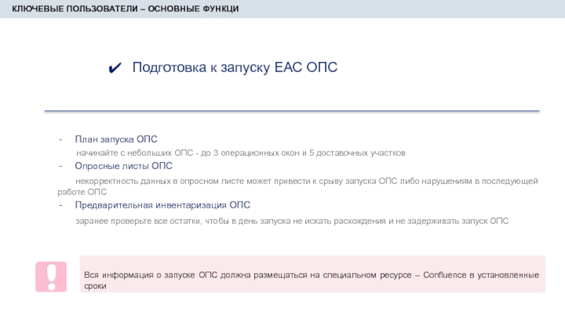 Вся информация о запуске ОПС должна размещаться на специальном ресурсе – Confluence в установленные сроки