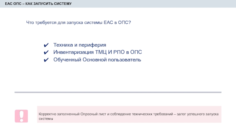 некорректность данных в опросном листе может привести к срыву запуска ОПС либо нарушениям в последующей работе ОПС