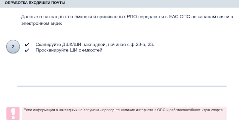 Данные о накладных на ёмкости и приписанных РПО передаются в ЕАС ОПС по каналам связи в электронном виде: