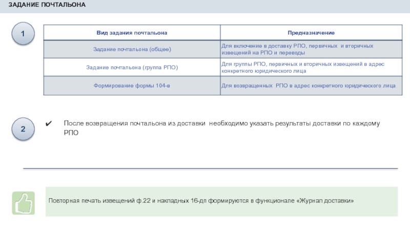 Повторная печать извещений ф.22 и накладных 16-дп формируются в функционале «Журнал доставки»