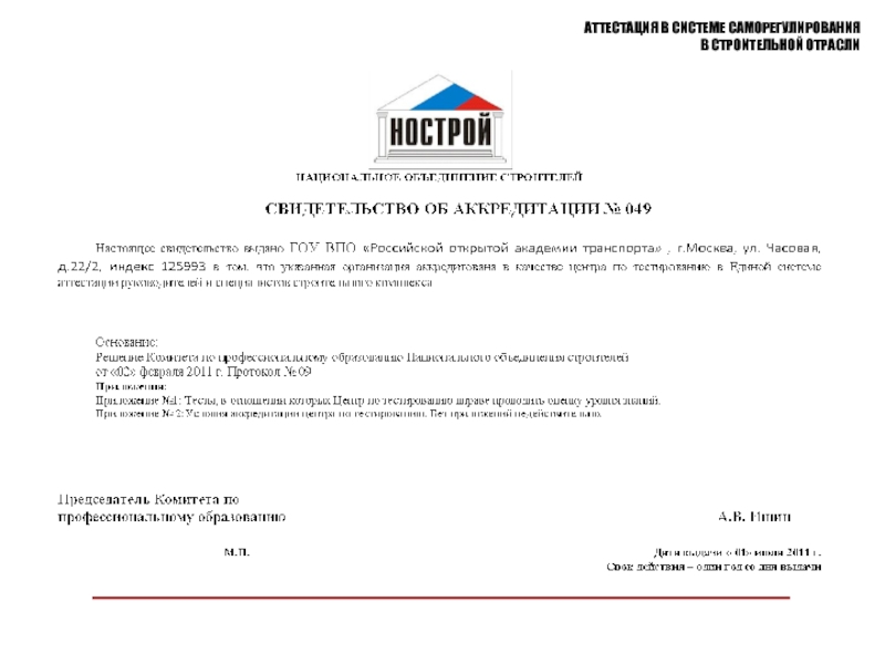 Положение о порядке формирования перечня вопросов – ответов для целей компьютерного тестирования, определения стоимости таких работ одобрено решением Комитета НОСТРОЙ по профессиональному образованию 25.05.2011г. Протокол №12