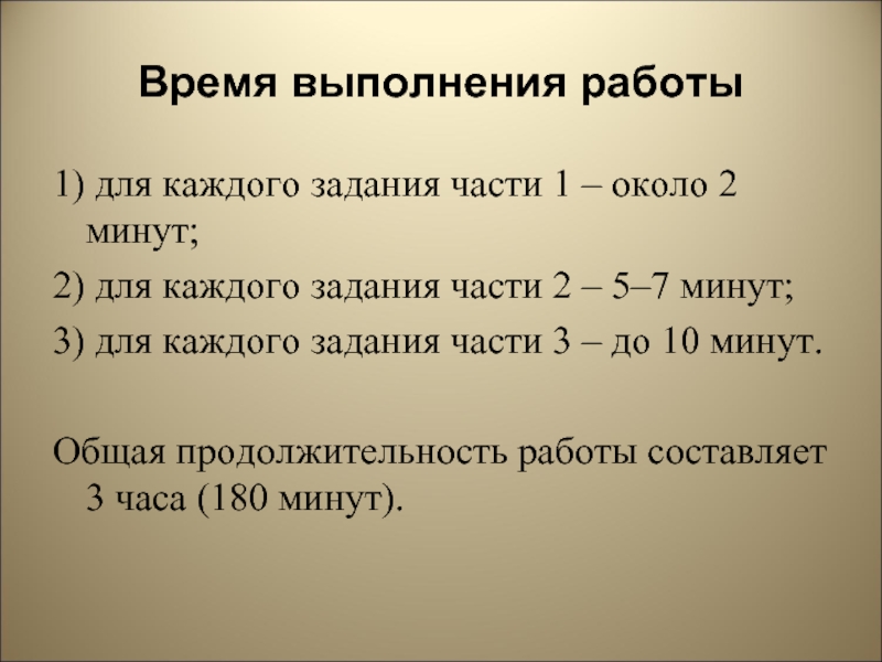 Общая продолжительность работы составляет 3 часа (180 минут).