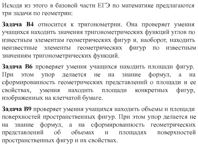 Слайд 6Исходя из этого в базовой части ЕГЭ по математике предлагаются три