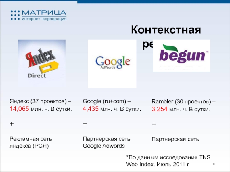 *По данным исследования TNS Web Index. Июль 2011 г.