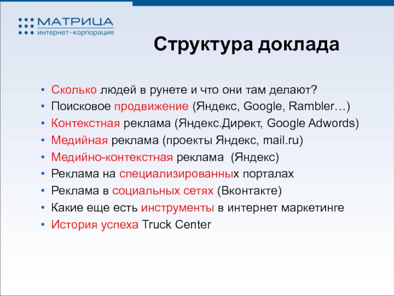 Rambler (30 проектов) – 3,254 млн. ч. В сутки.