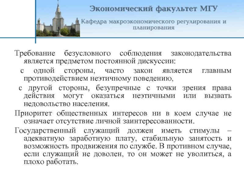 Требование безусловного соблюдения законодательства является предметом постоянной дискуссии: