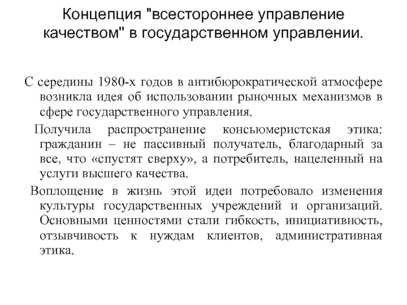 Слайд 15Концепция "всестороннее управление качеством" в государственном управлении.